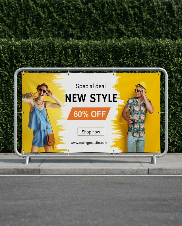 Creating a banner mockup before production helps you catch design mistakes early, check how the banner will look in real size, and make sure text and visuals are clear and readable.