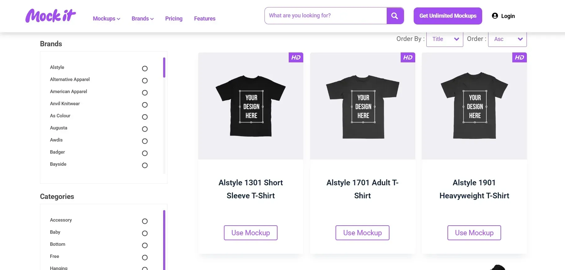 Top brands: Create optimised mockups for Top brands like Bella Canvas, Gildan, and Next Level.