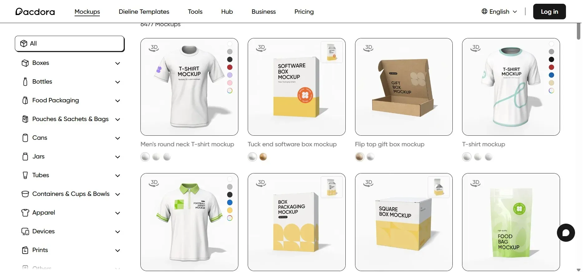 Pacdora offers professional-grade packaging and apparel mockups.