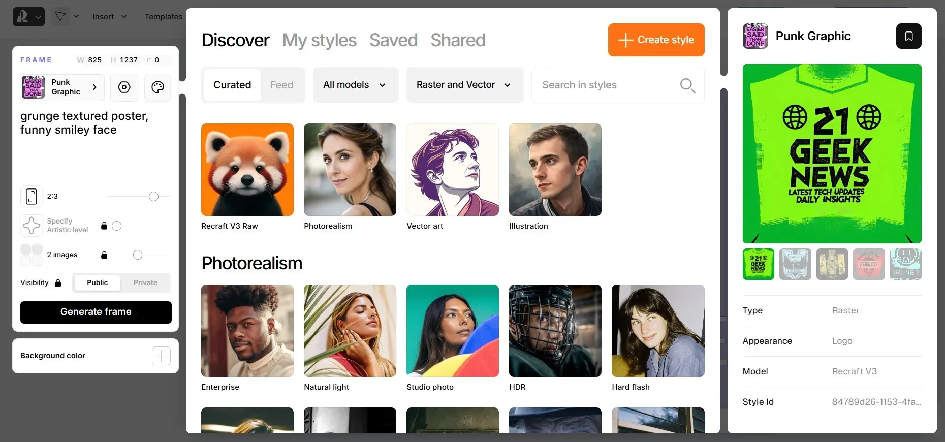 AI text-to-image generator: Recraft offers a World-class V3 text-to-image AI model for generating custom images for mockups.