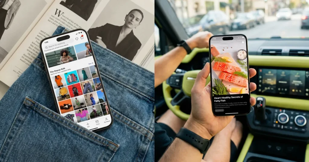 iPhone mockups do well on Pinterest. Suppose you’re promoting wallpapers or a design pack. Using them inside a warm, soft mockup makes the pin stand out and invites more downloads.