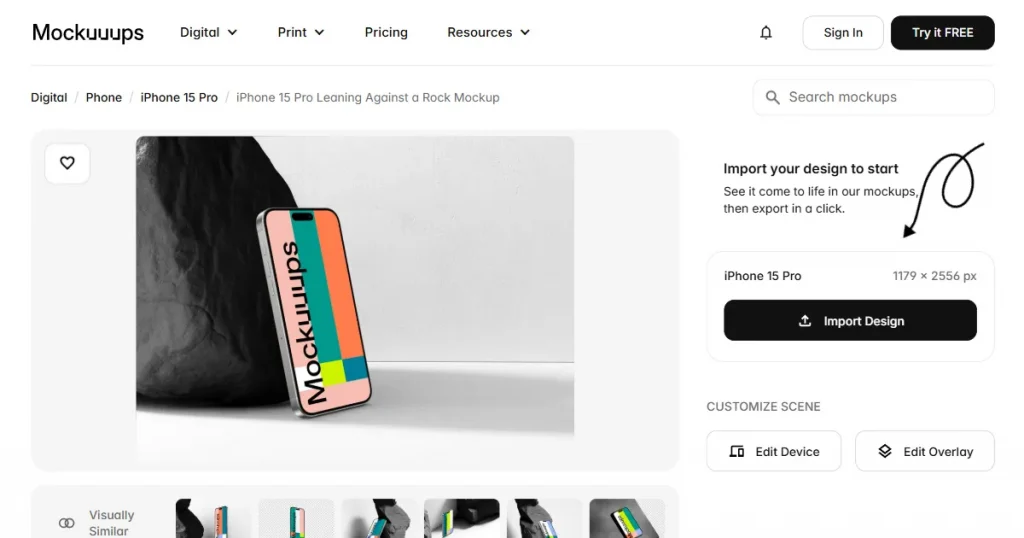 Mediamodifier features an extensive library of iPhone mockup templates built for product displays. Although the scenes are not as realistic as lifestyle mockups, they are great for quick flat lay compositions and basic presentations.