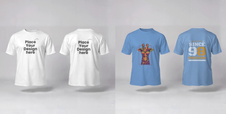 A T-shirt mockup is a digital presentation of how your design would appear when embedded on a T-shirt. It renders real-world features such as texture, folds, and lighting- enabling you to showcase a virtual sample without having to invest in a physical production.