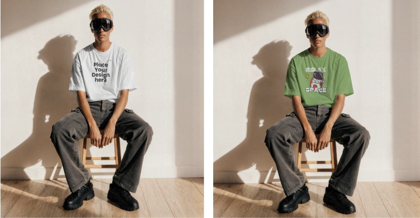 Lifestyle mockups are used when models wear the t-shirt in real-life situations. Their strength is particularly high on social media, where customers seek relatability and authenticity.