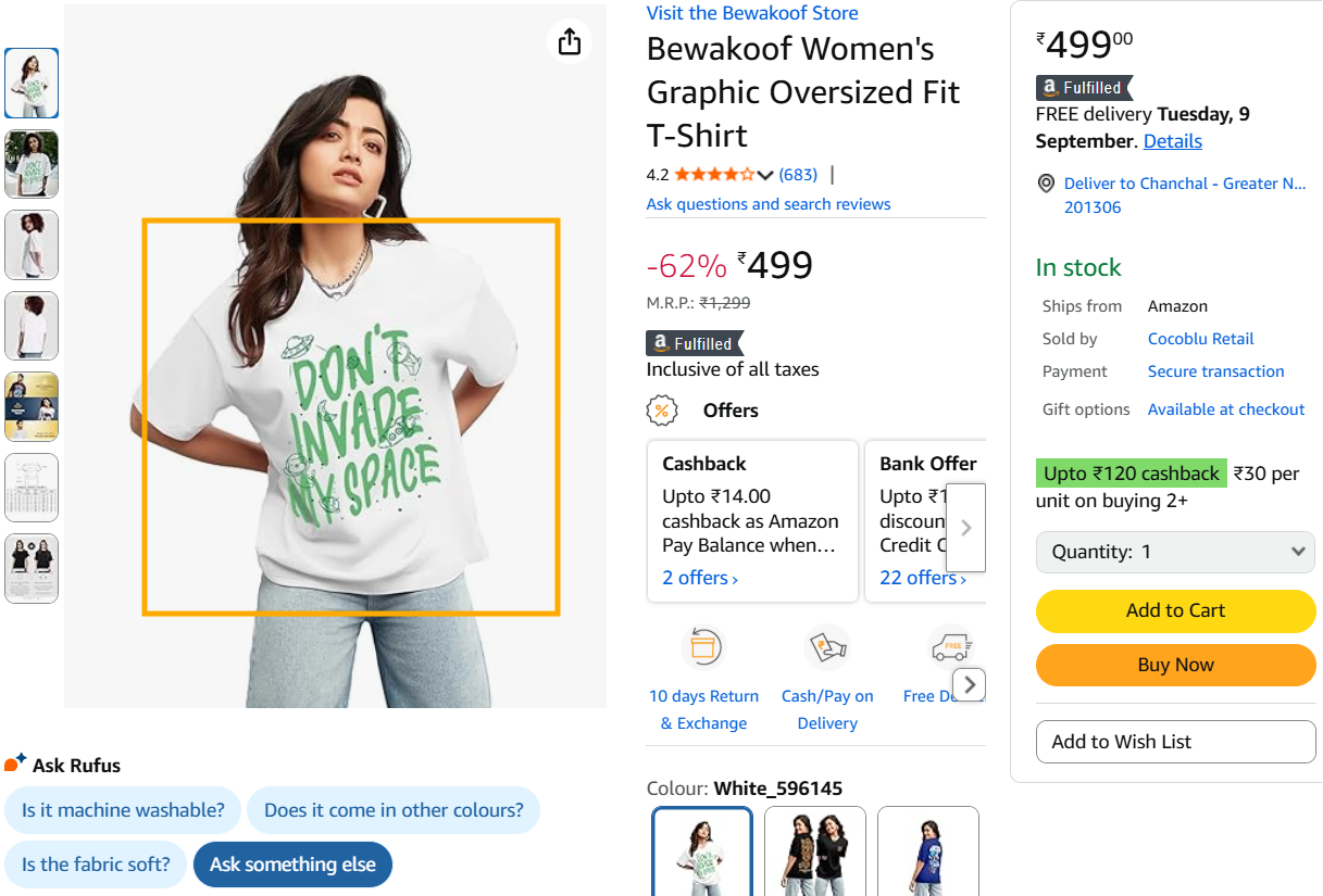 Select a template: Select among a wide range of templates, such as flat lays and model-created shots. Adjust the size as required by Amazon.