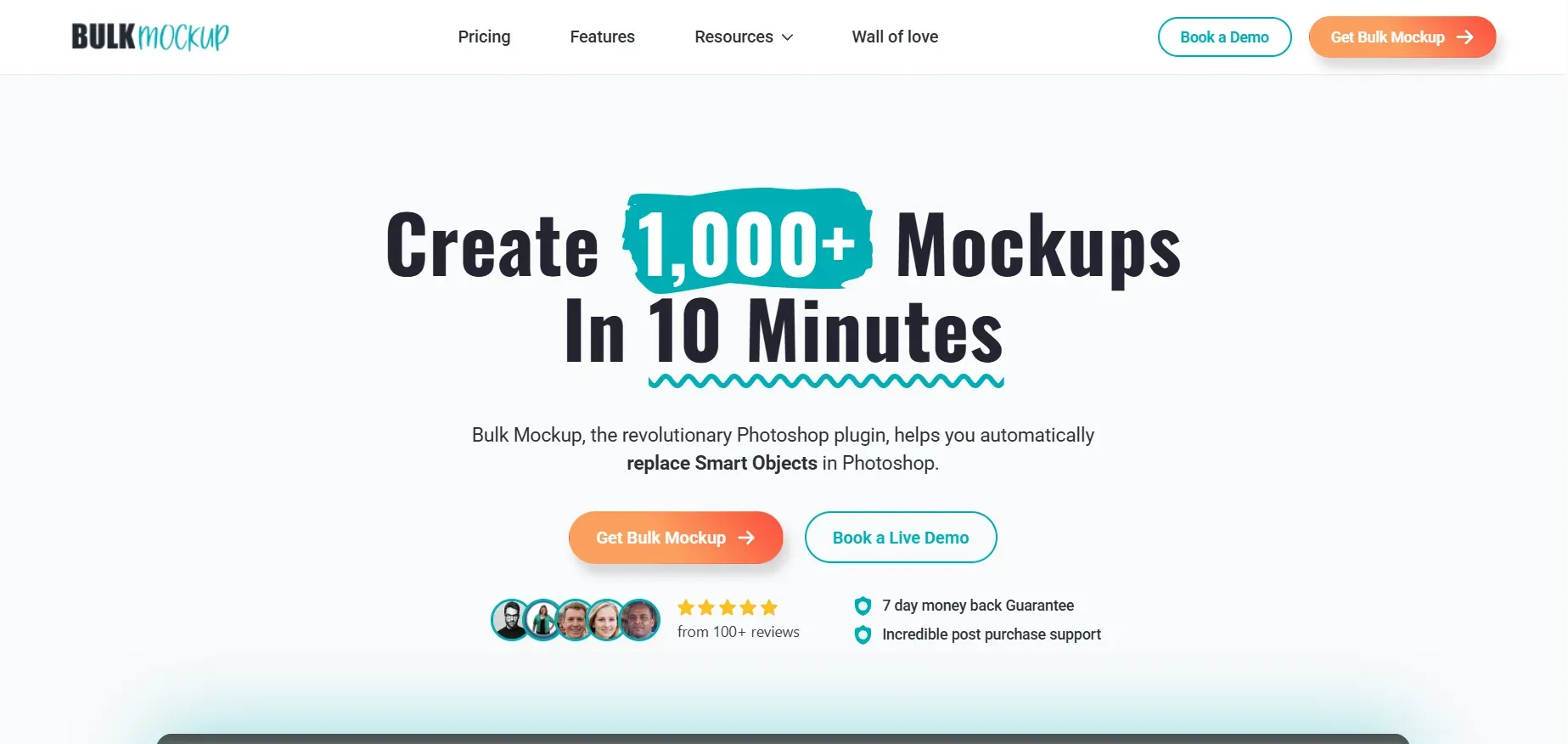 Bulk Mockup is not a standalone online tool but a Photoshop plugin. It's designed to automate batch mockup creation for users who already work within Photoshop by automatically replacing smart object layers in PSD templates.