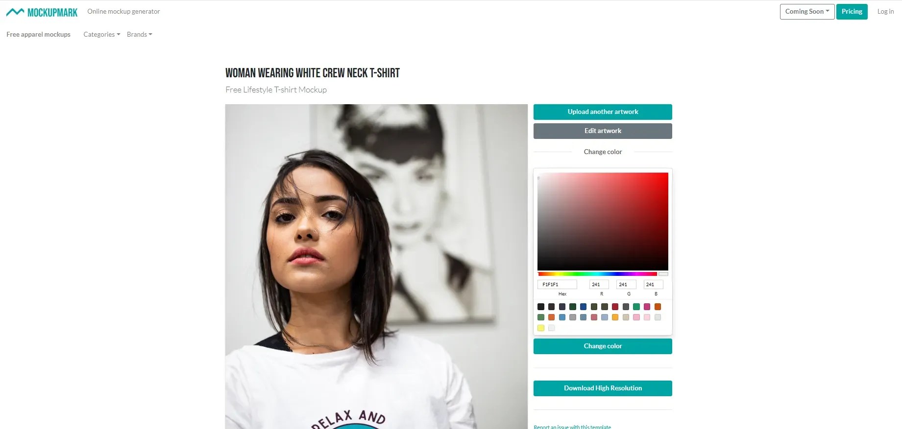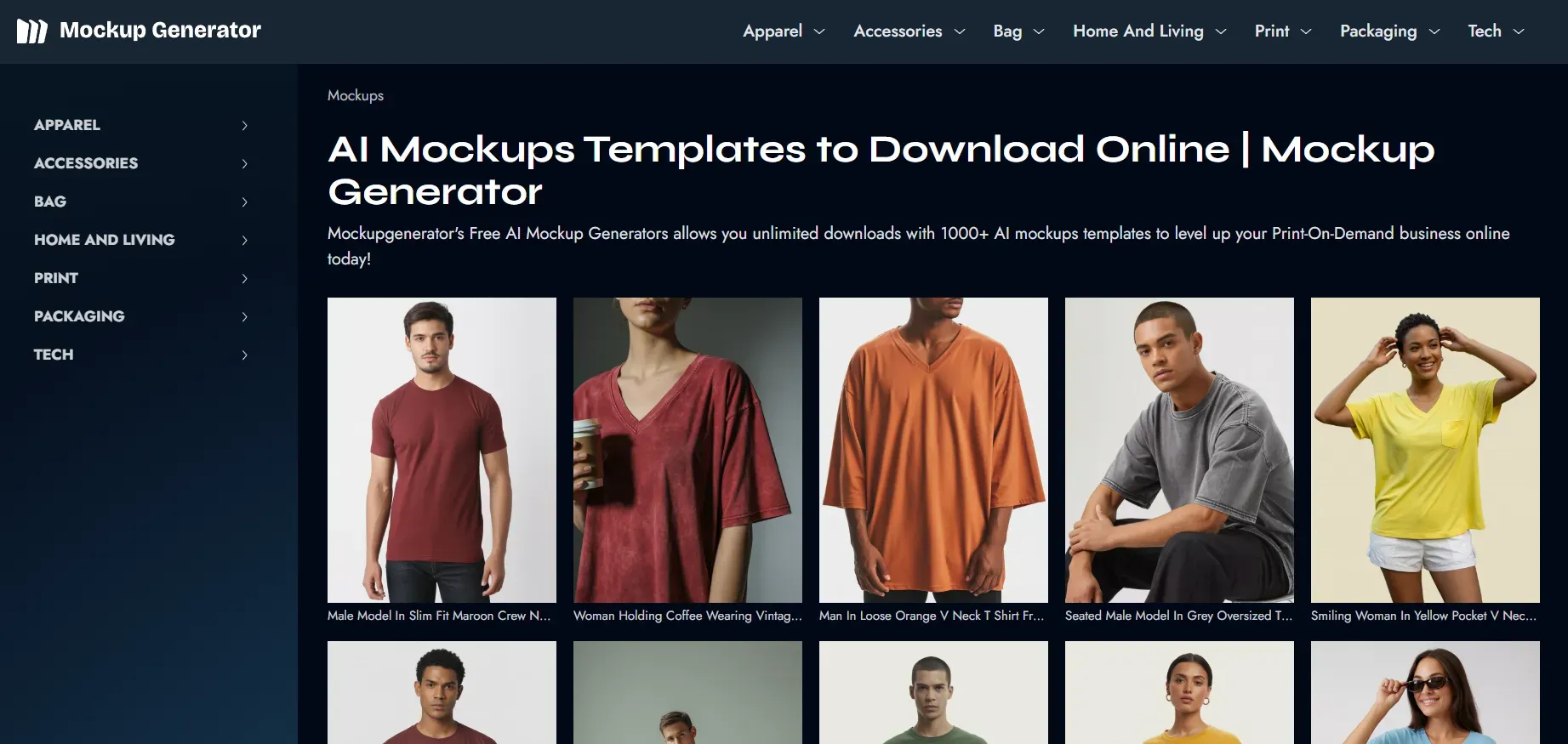 Mockup Mark is a specialized, niche tool. It focuses almost exclusively on apparel and merchandise mockups, making it a favorite for the POD community. It has an easy-to-use interface for shirts, hoodies, mugs, and other merch.